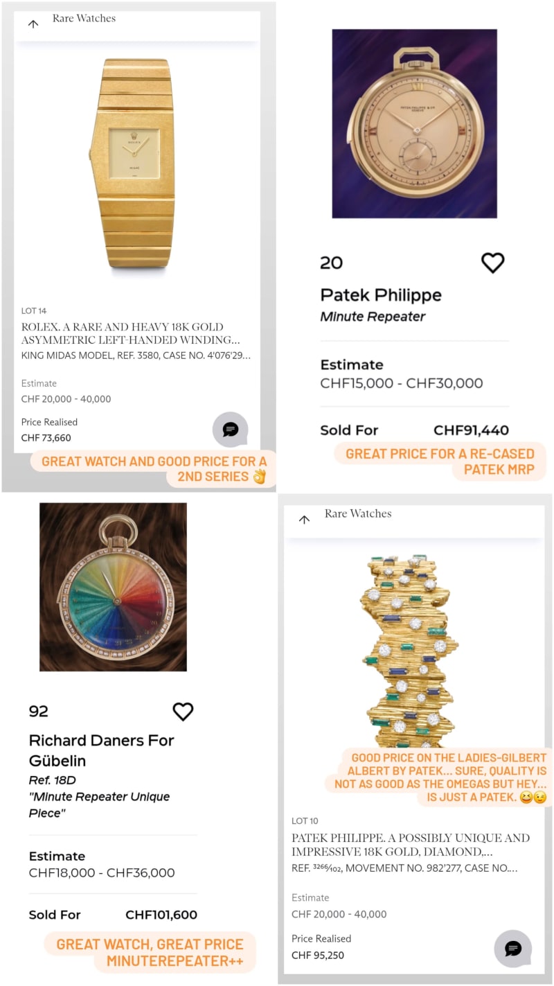 And yes, ladieswatches have a good time ahead as indicated by the strong results for Ladies-Pateks & -Piagets -- and who is surprised: the value for money in the vintage ladieswatches is so high and accounted against much rarer, exceptionally high-quality watches. To find a comparable bargain in men-watches is a very complicated task...