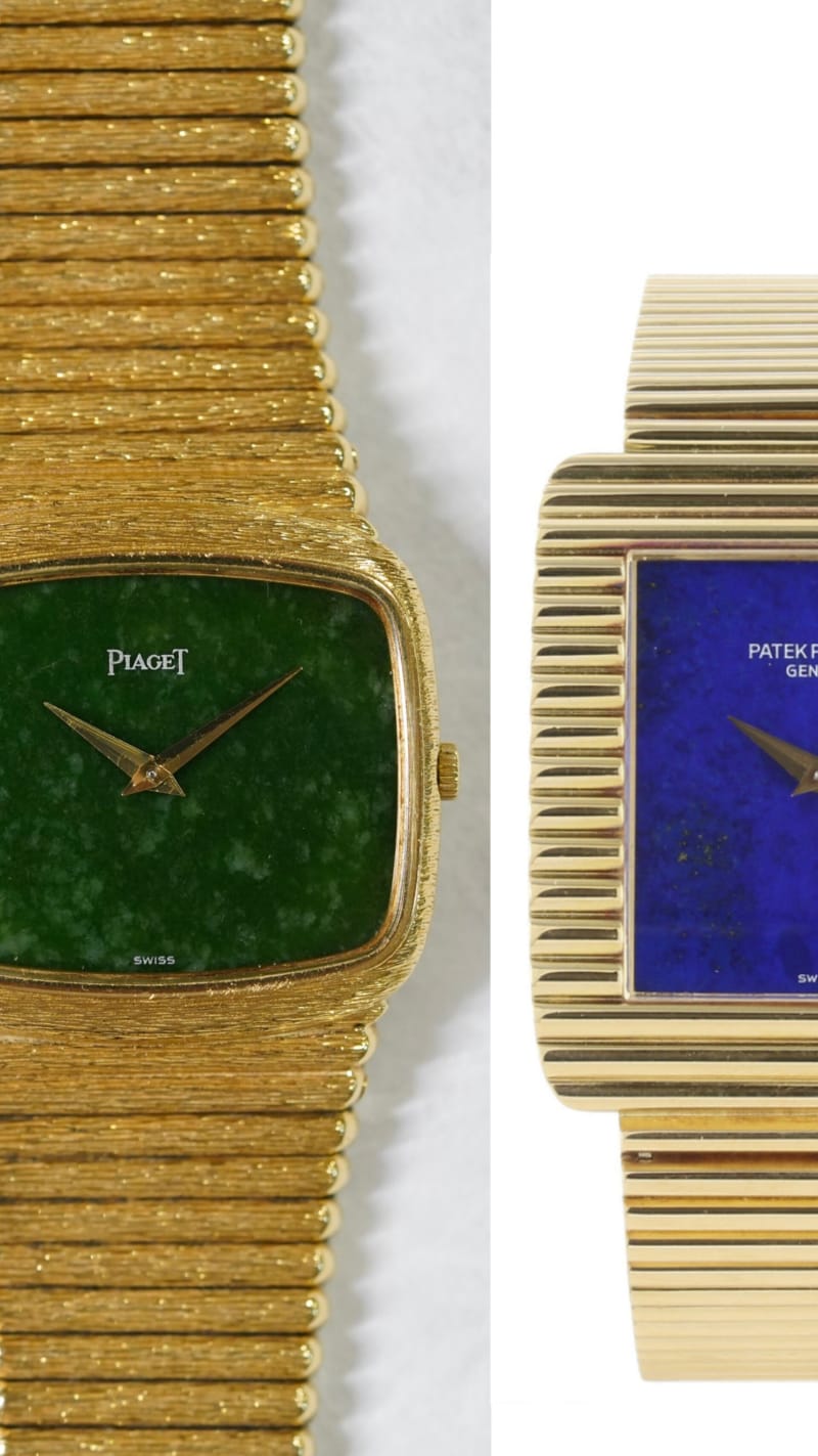 Let us compare the Patek Gondolo ref3733 vs the Piaget Emperador -- I guarantee surprising insights to horological-history. Both watches were characteristic and time-dependent icons of the mid- to late-1970s. An era when Piaget set the tone -- not only: they also set the trend for stonedials, which they artfully created since the mid-1960s exclusively. Exclusively because they were until the mid-70s the only brand that was able to make these stonedials: cut stones in thin slices of 0.7mm, drill a hole into the middle and polish them -- that was possible by Piaget but with a high rejection rate.