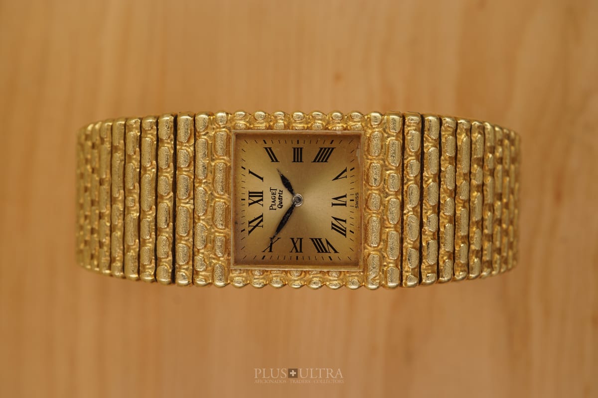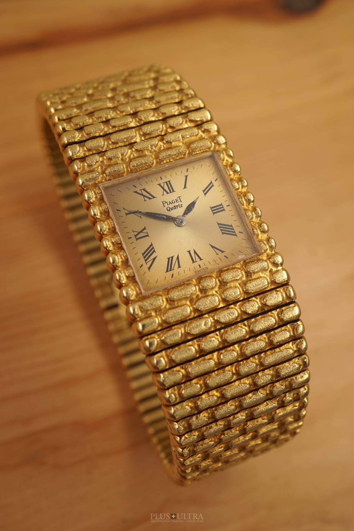 WHY IS IT IN OUR MUSEUM? It is one of the first Piaget with the 1977-presented cal7P, the first in-house developed quartz-movement by Piaget. And it is the direct blueprint for the 1979-presented Polo -- same dimensions, same bracelet-system. Two years before the Polo.