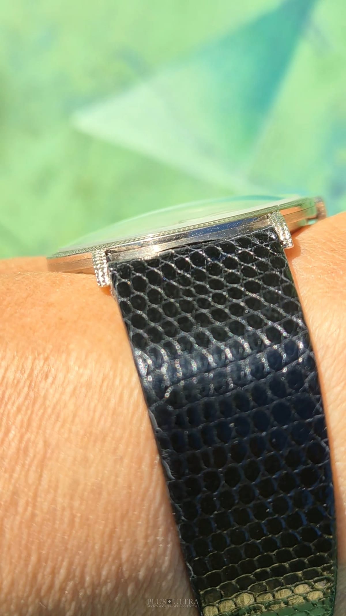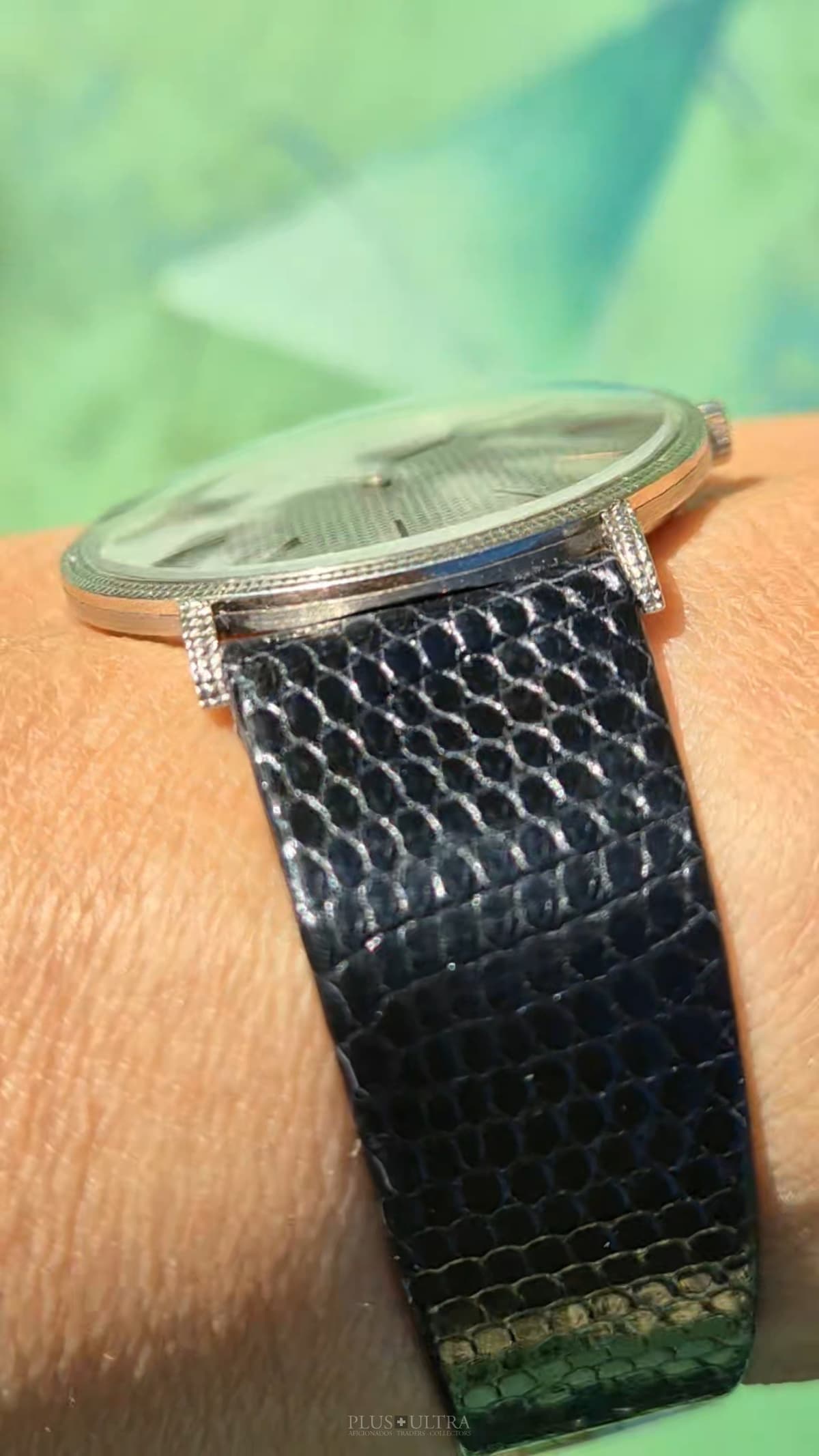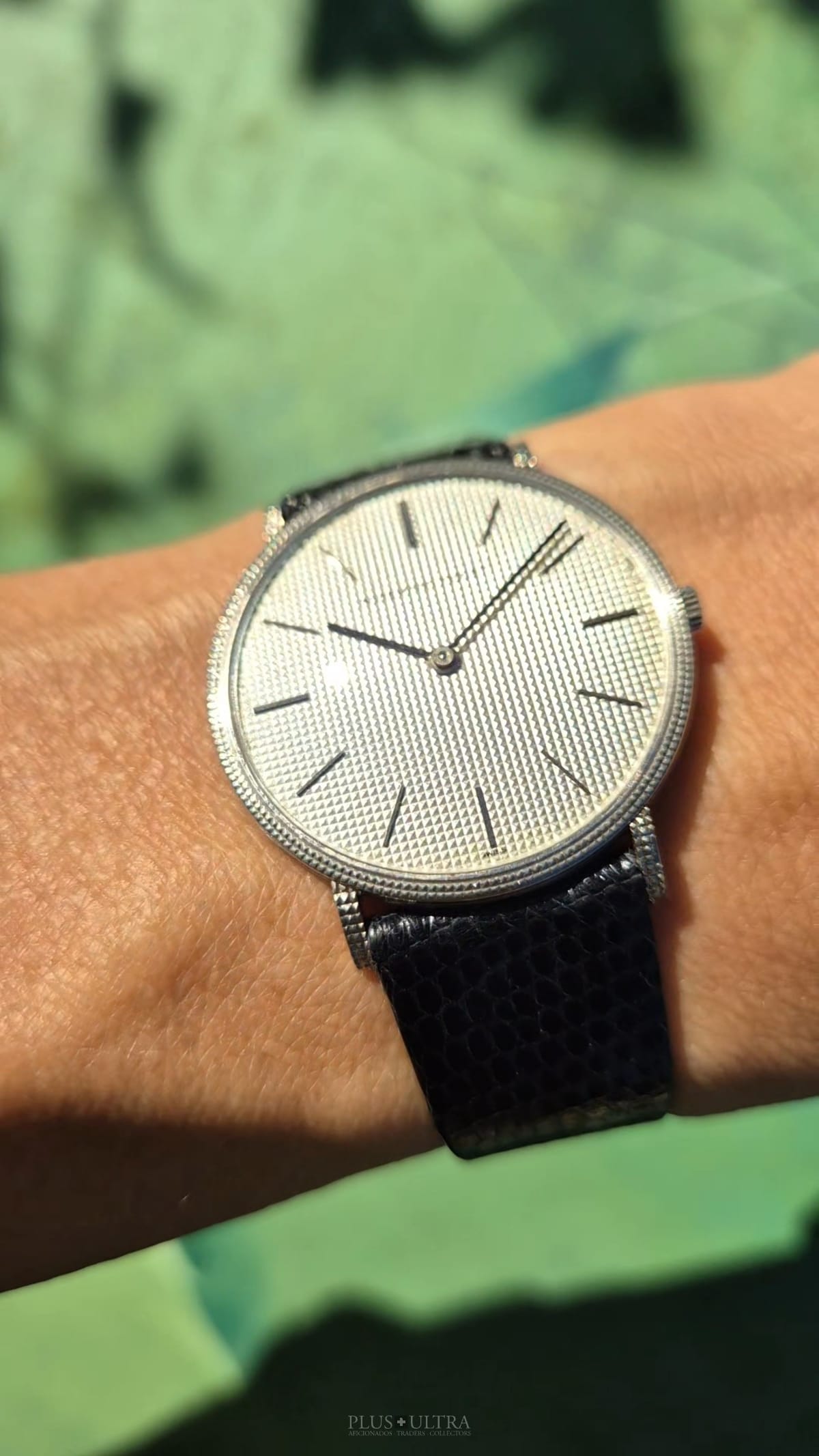 WHY WE LOVE IT? A substantial weight in the well-preserved 18K-whitegold variant and a mesemerizing hobnail- / guilloche finishing in a classic-sized case, 50y old: just lovely.