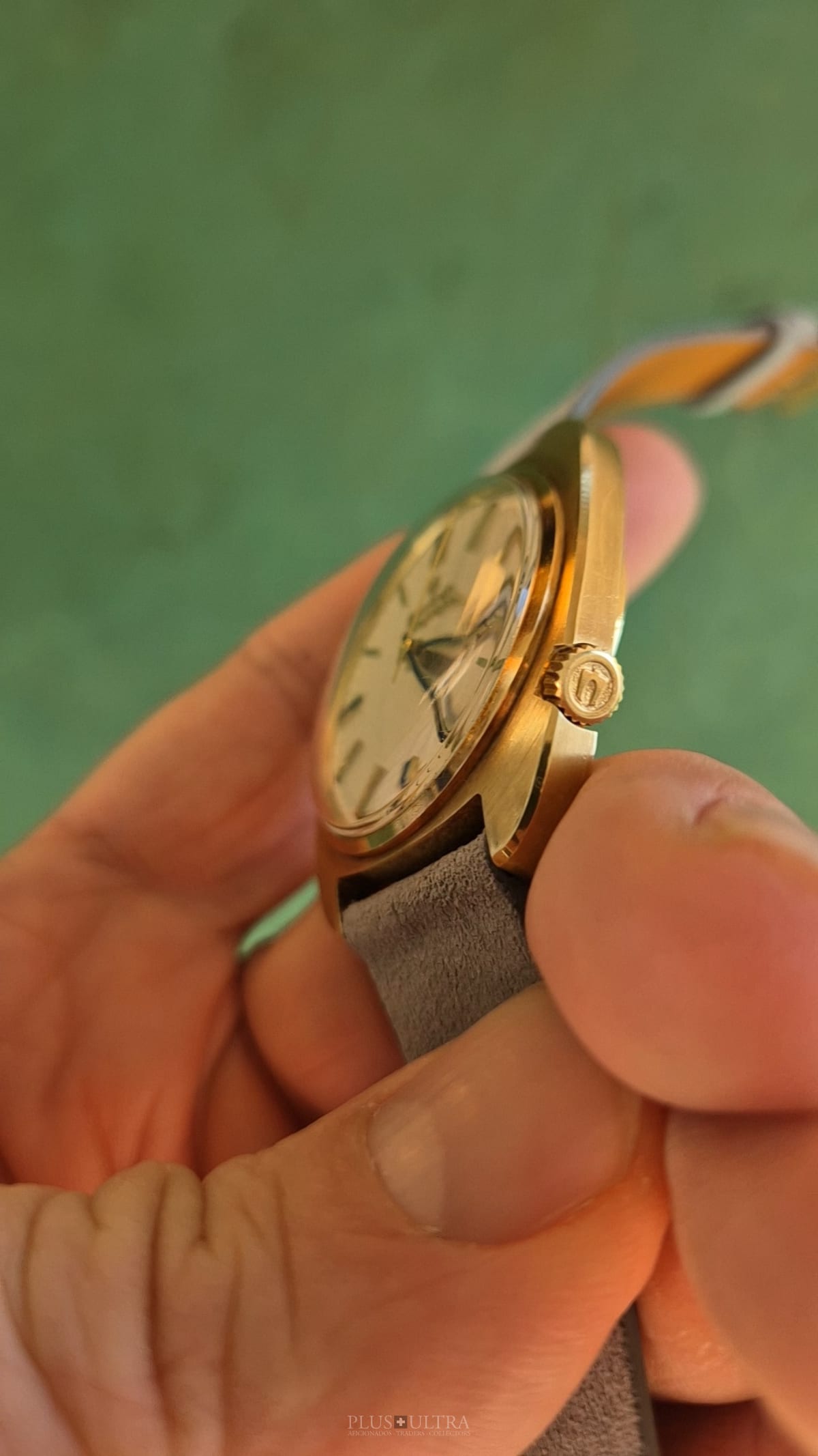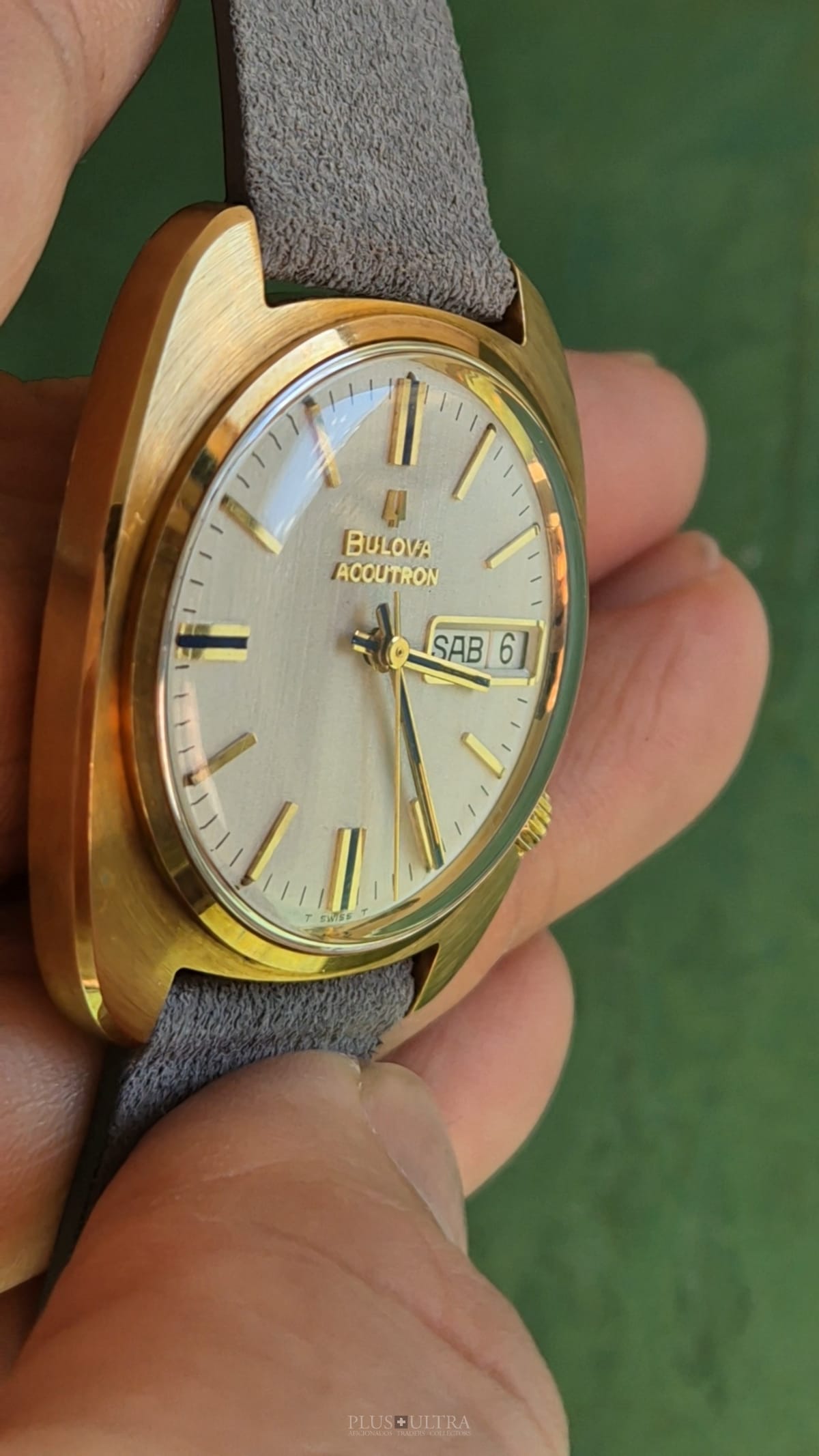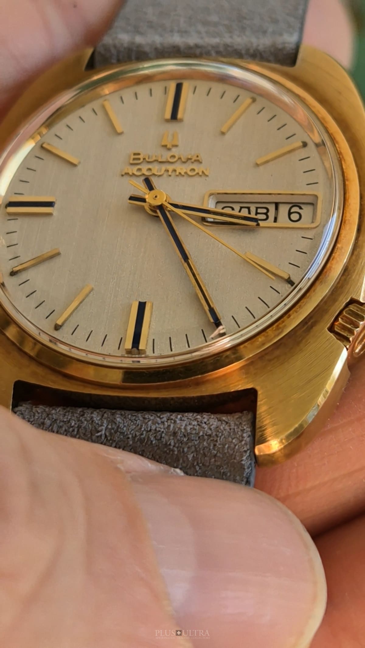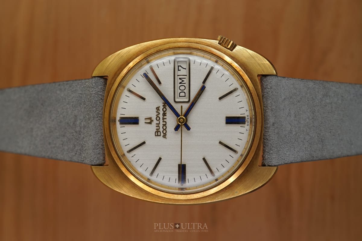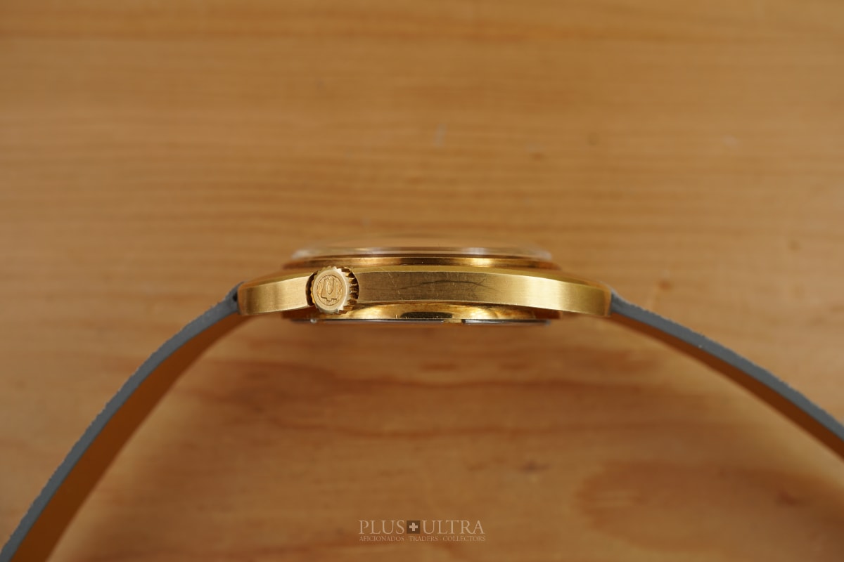 This Accutron was made in 1969 and is in excellent condition, the case is a bit tarnished from oxidation -- but as usual this could be rubbed off to full shining gold --, but is imo unpolished. The edges are crisp and the hallmark deep and visible.
