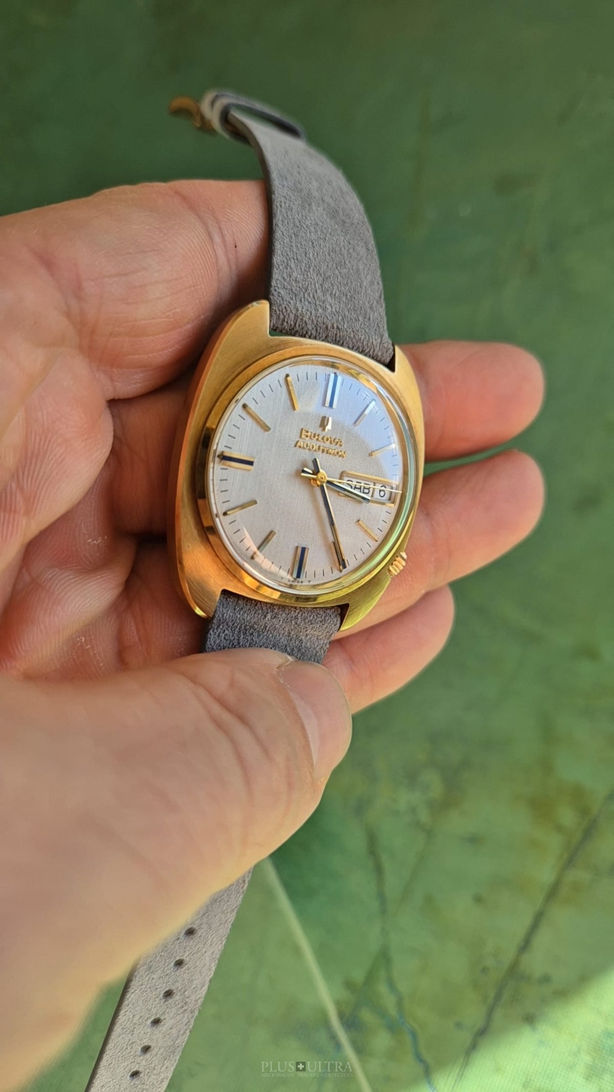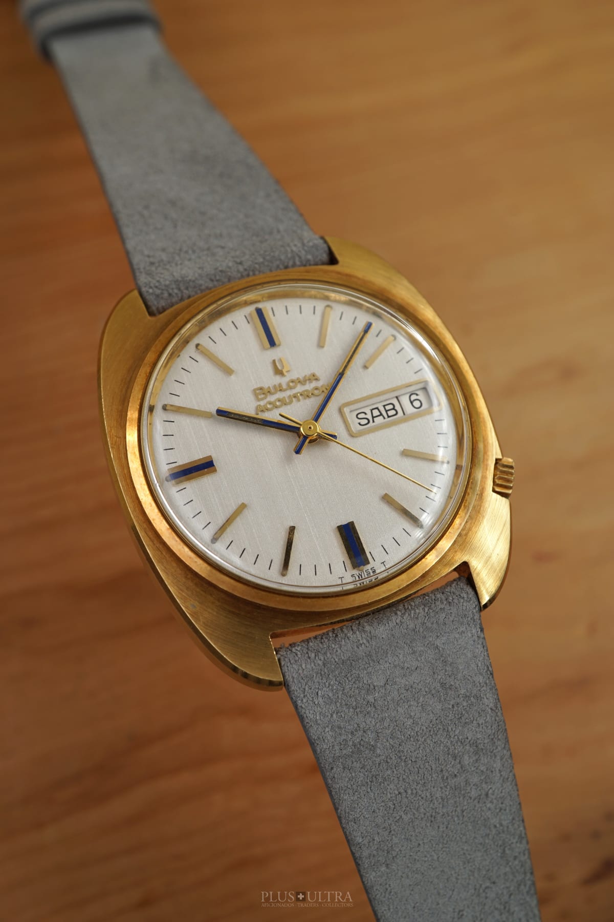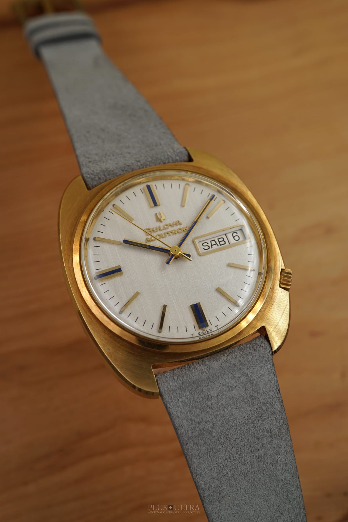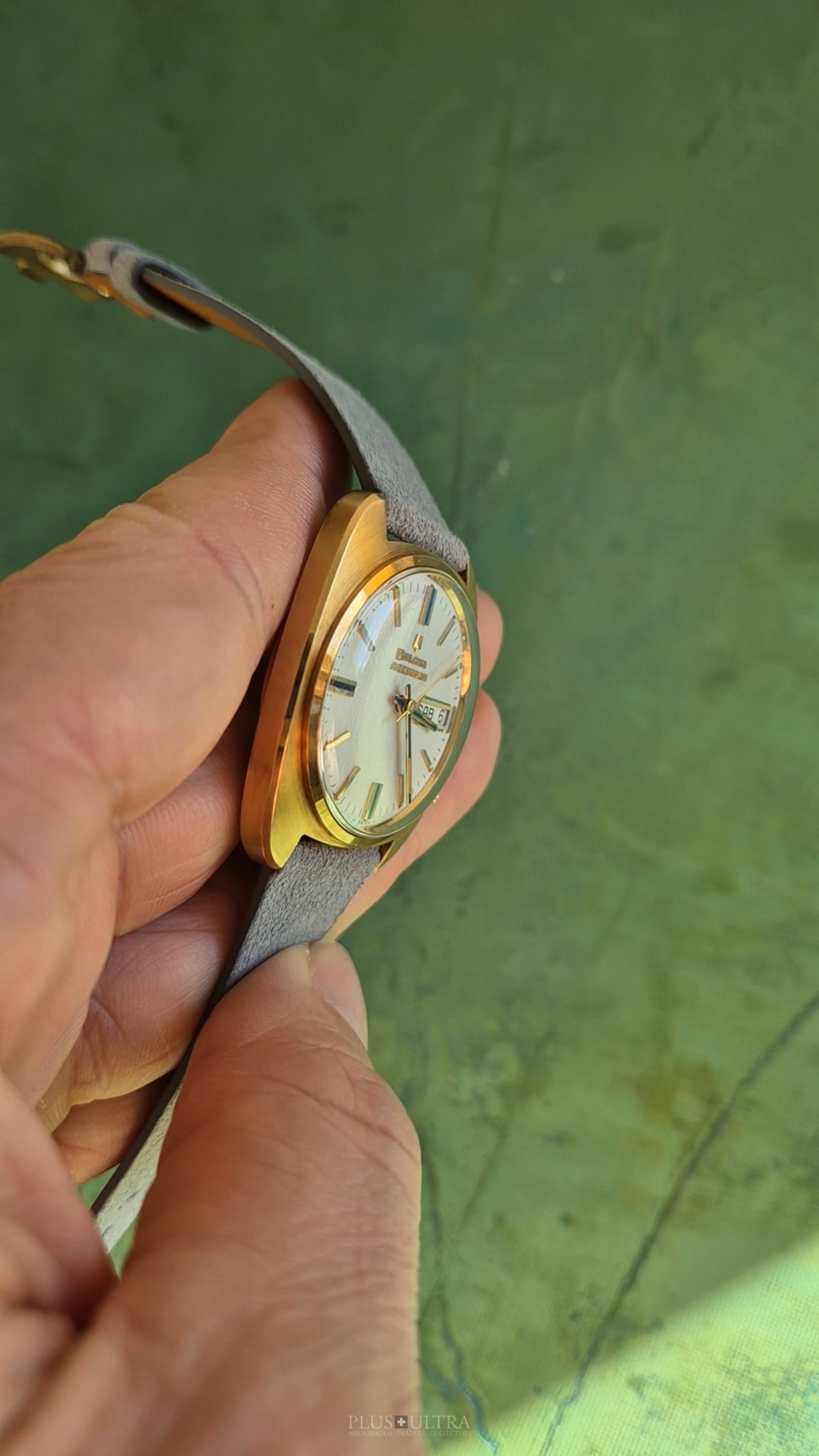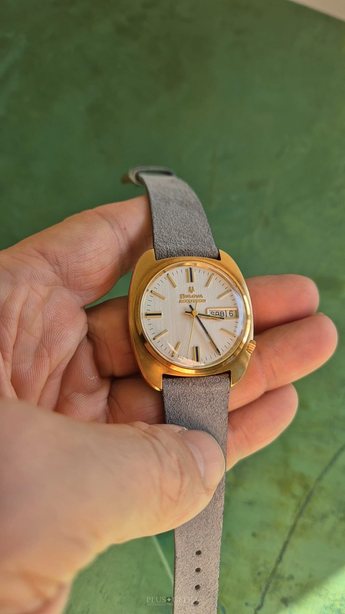 This Accutron was made in 1969 and is in excellent condition, the case is a bit tarnished from oxidation -- but as usual this could be rubbed off to full shining gold --, but is imo unpolished. The edges are crisp and the hallmark deep and visible.