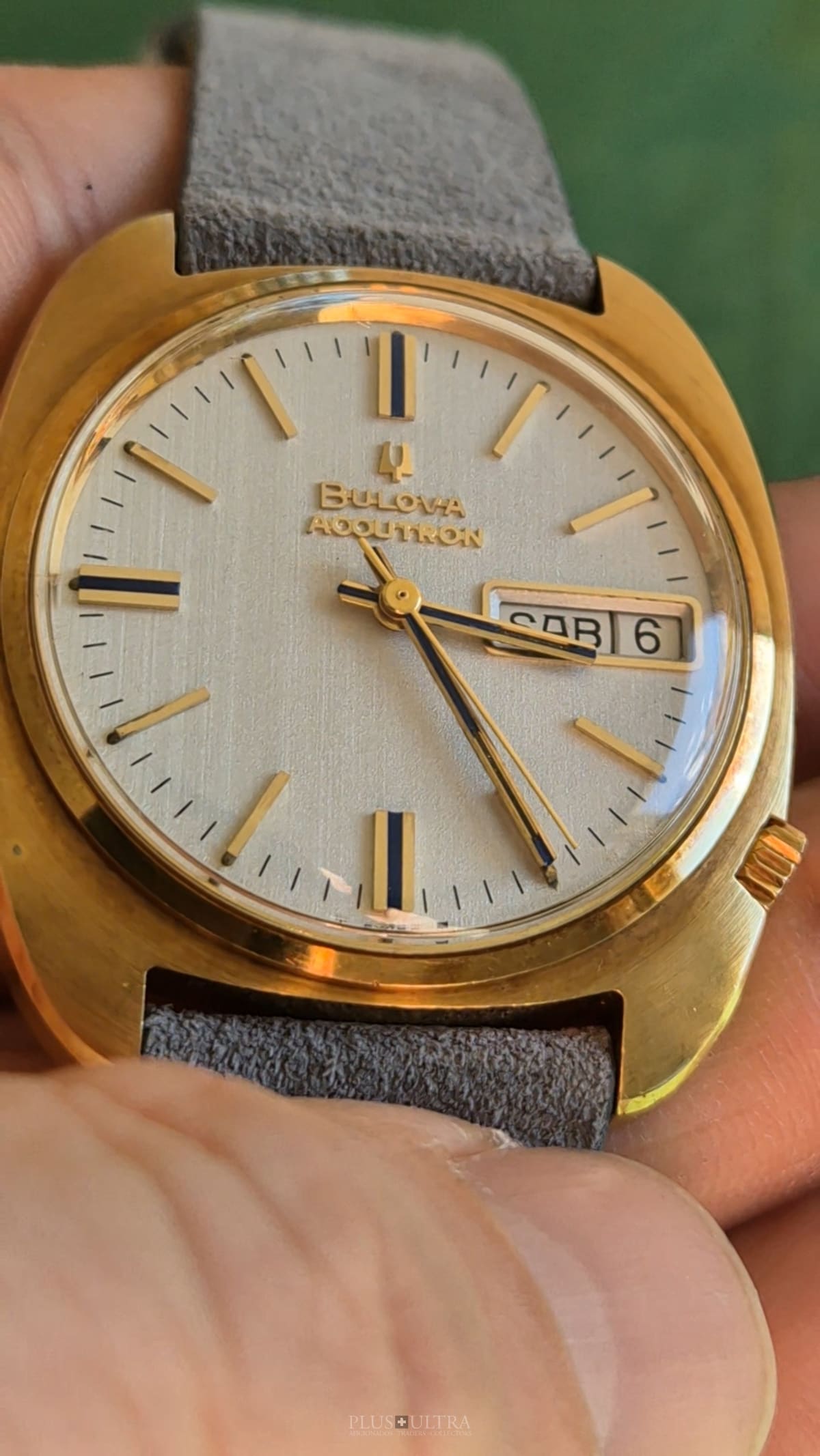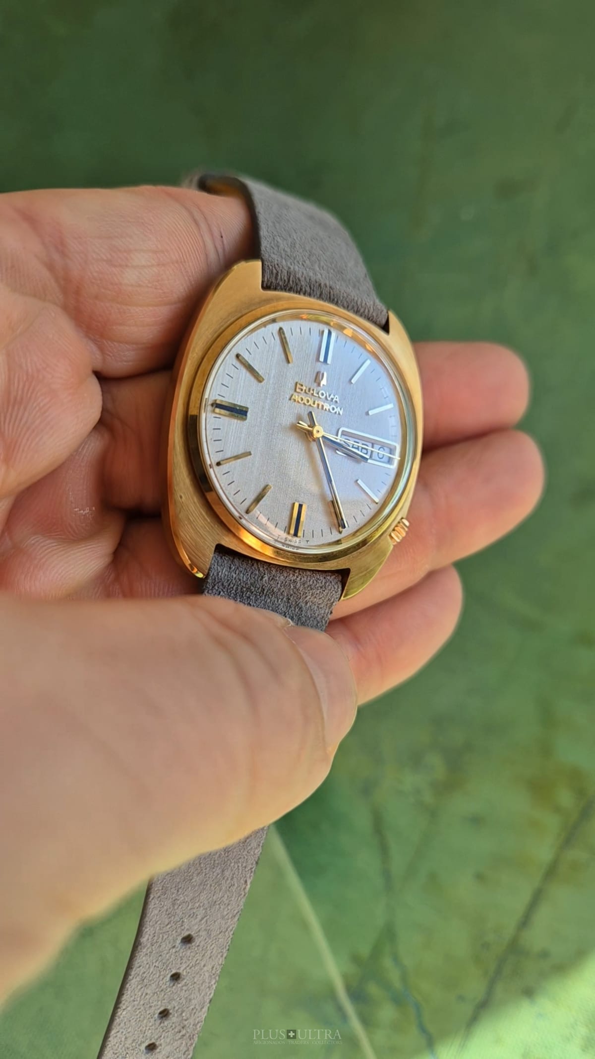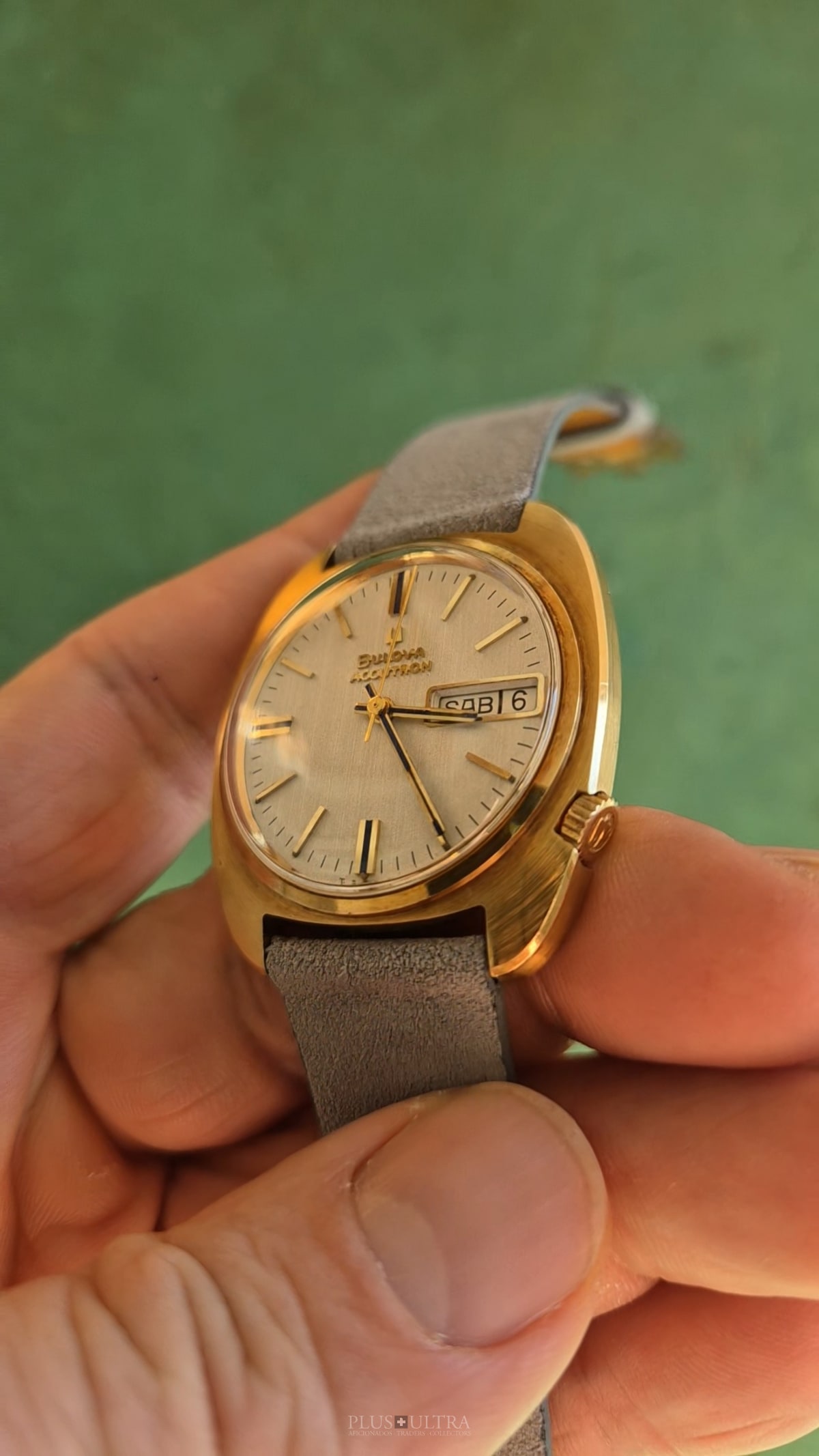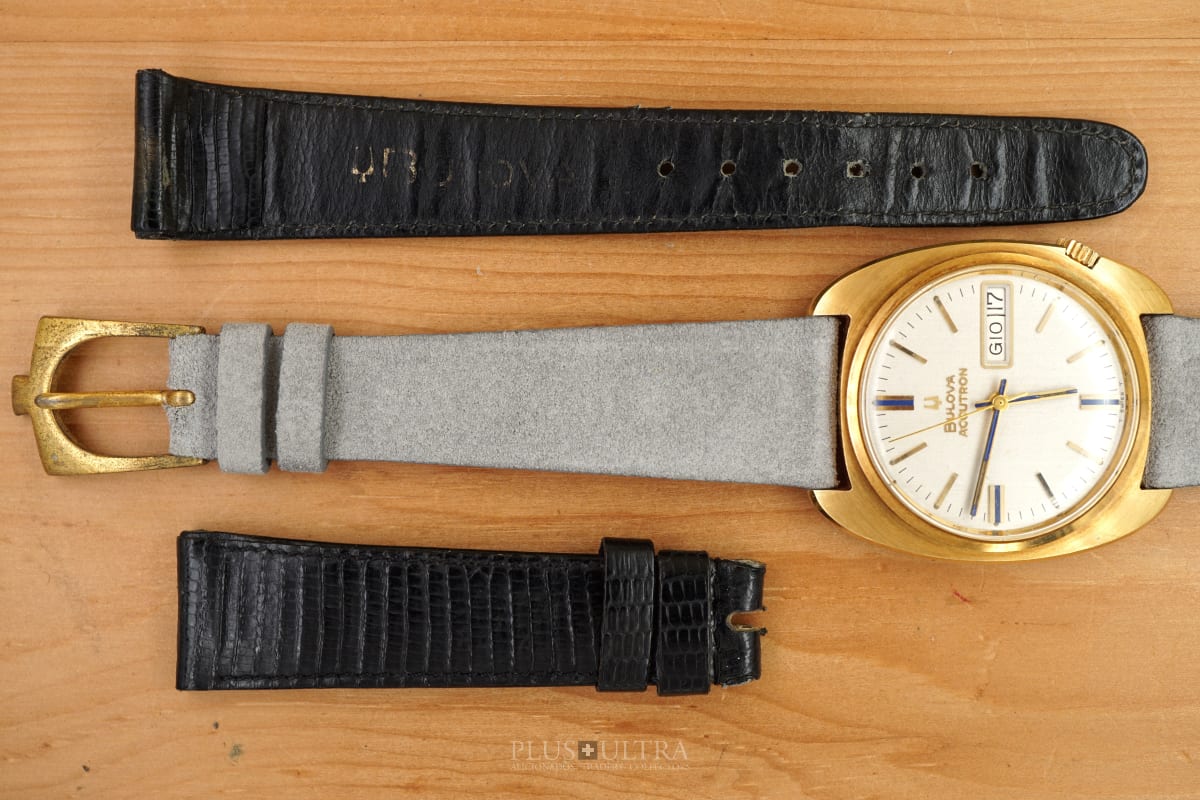 It comes with its original buckle and the original Accutron-strap (used). Also, it is in technically very good condition, runs reliably & precise