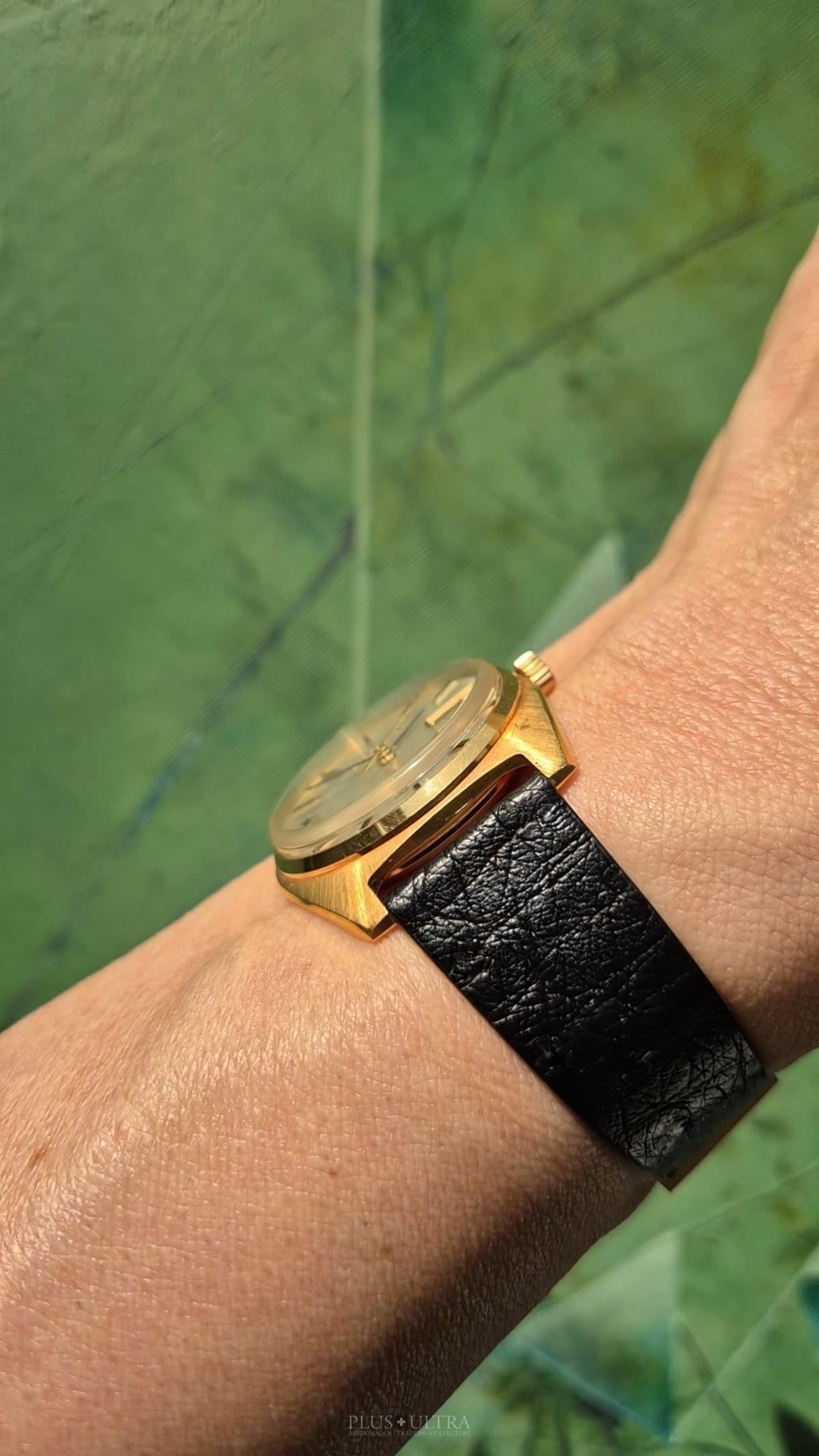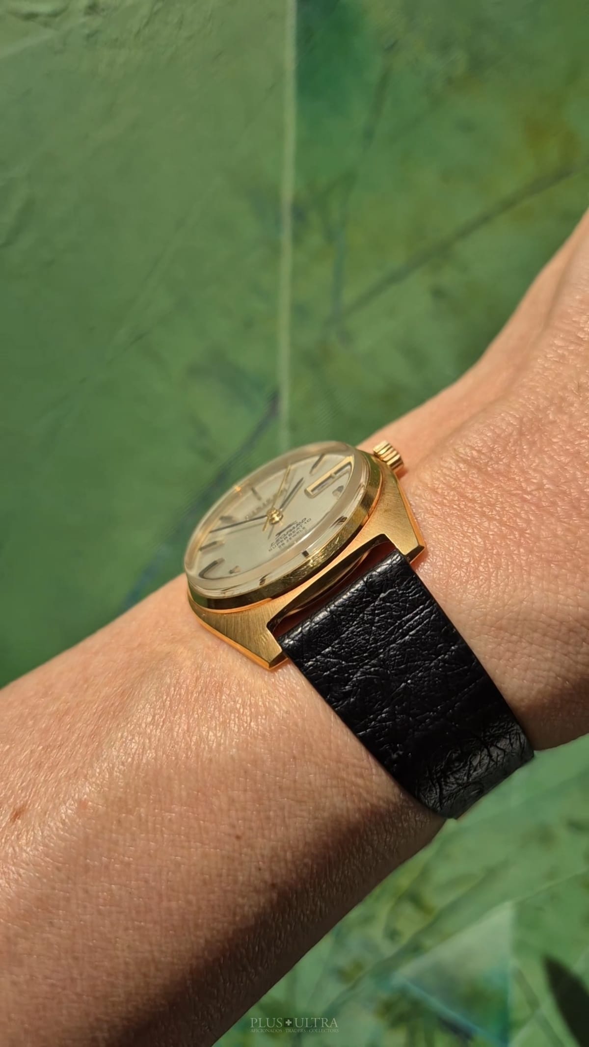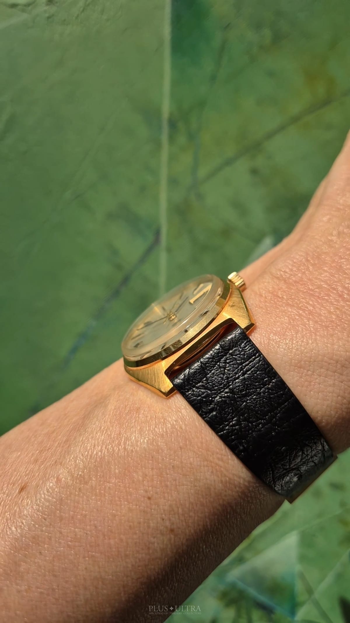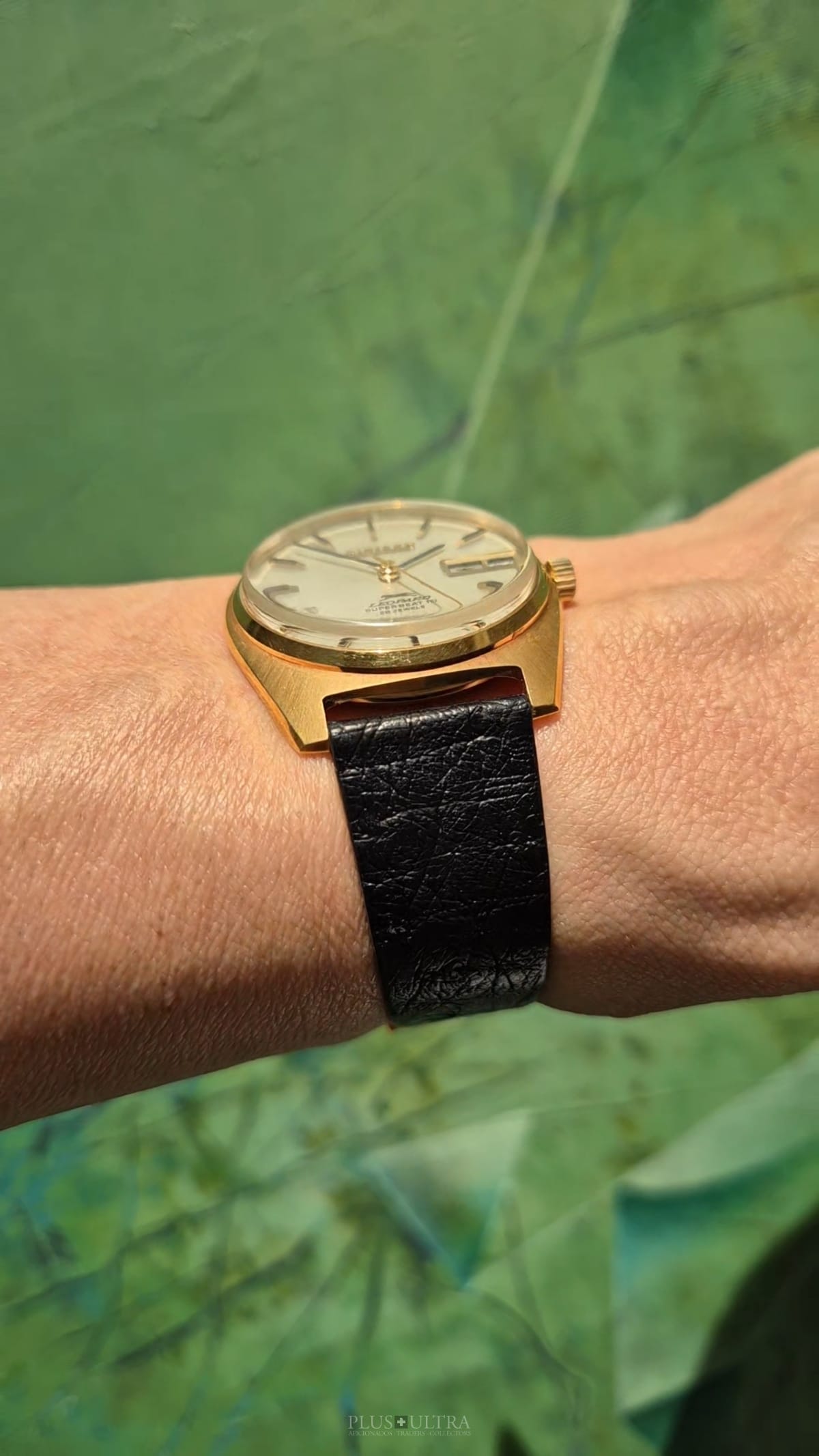WHY WE LOVE IT? Because of its profile and shape: beautiful; because it is a industry-historic artefact: important; and because it is a 36'000bph-Automatic movement, that was a horological milestone in the late 1960s and early 1970s -- a technological manifest to precise and classic mechanical watchmaking and an answer to the upcoming electronic watches.