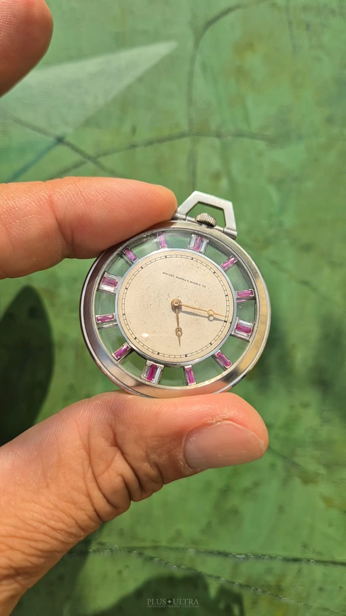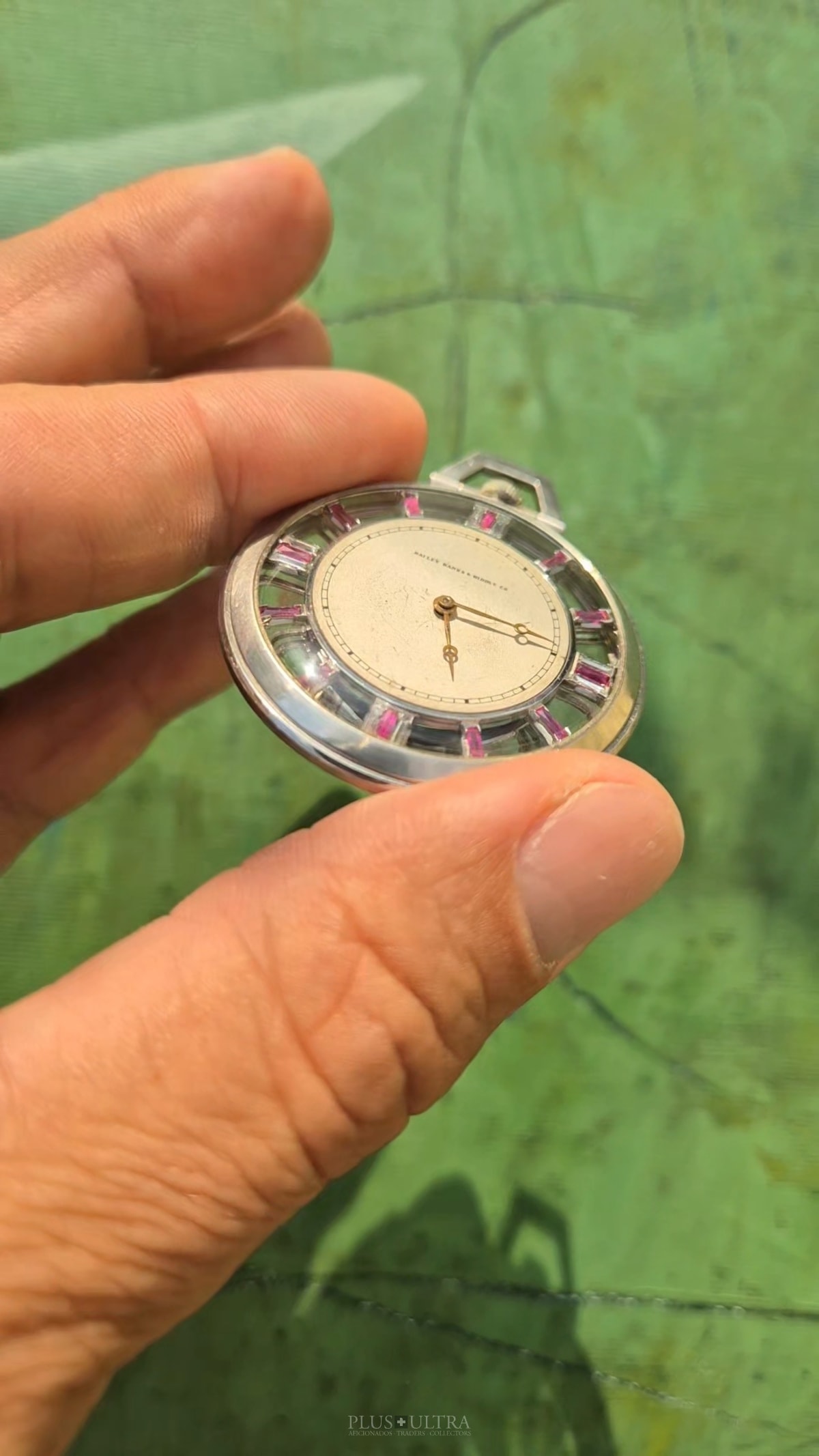 Longines Diamonds & Rubys Helm: DoubleSigned Gouvernail-PocketWatch, Platinum