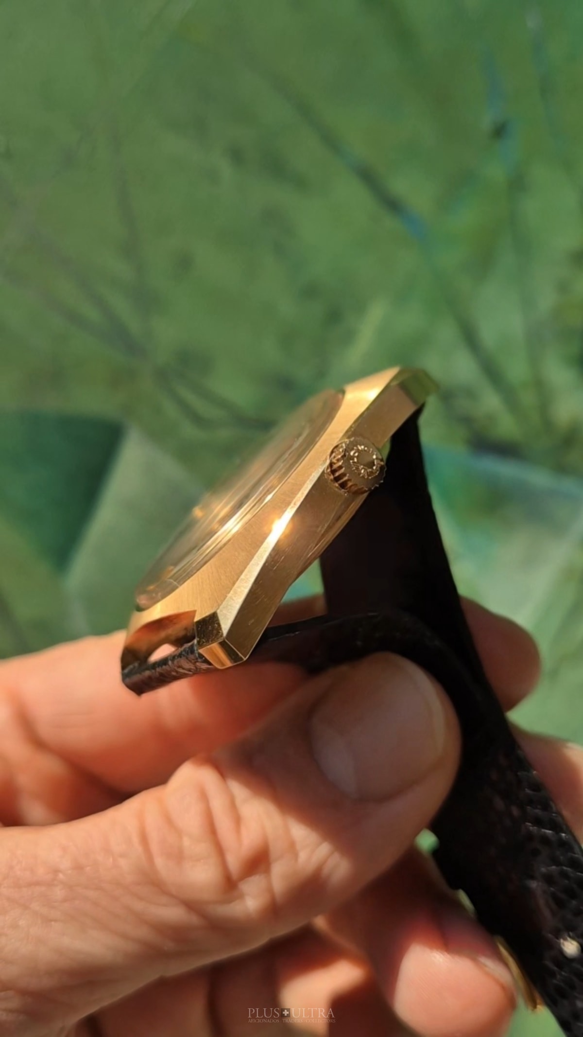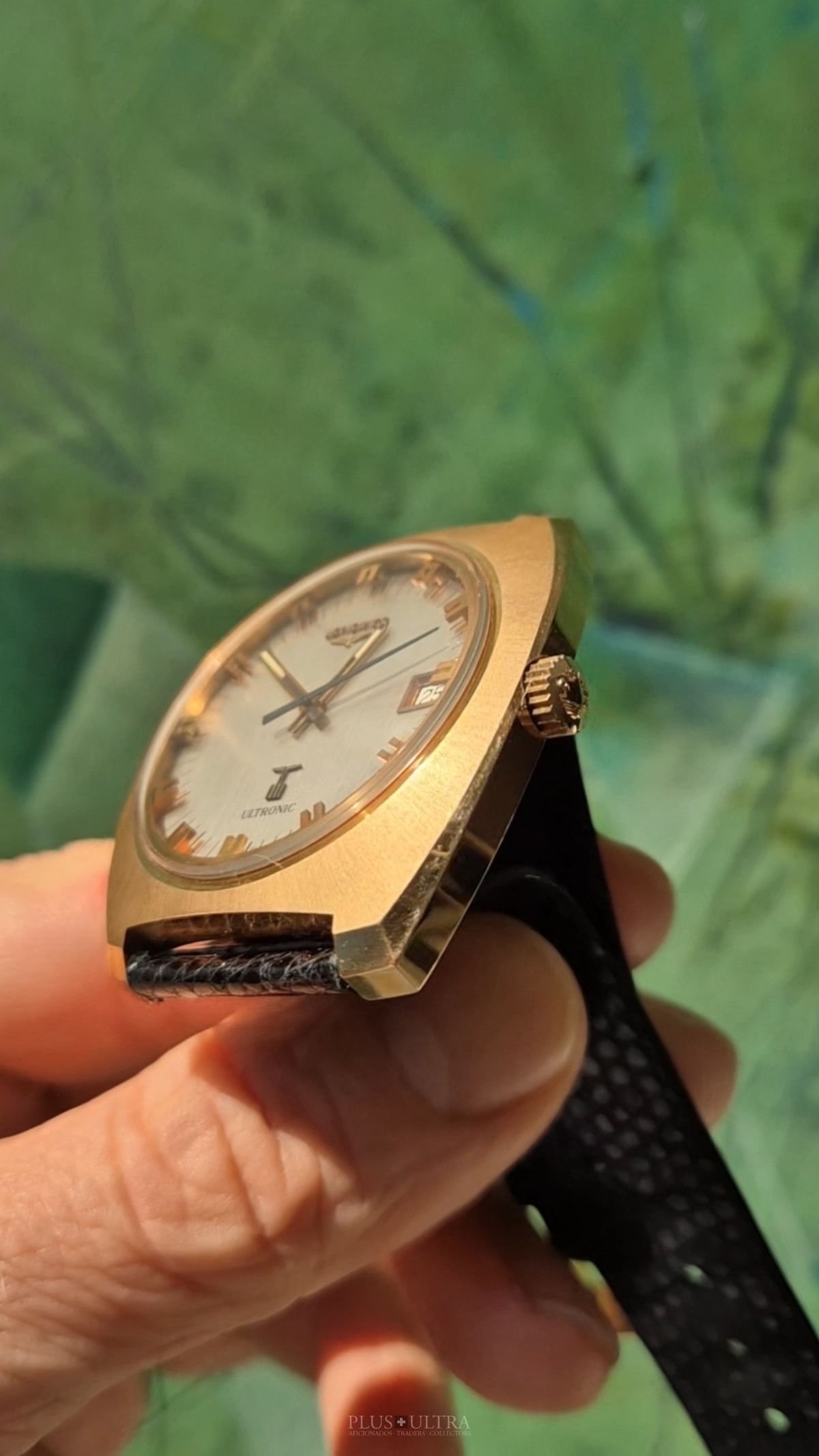 WHY WE LOVE IT? We love solid-gold tuningfork-watches -- #nothingHumsLikeSolidGold -- as they were executed in highest quality and are artefacts from a time, when the first steps were made in electronic watches but quartz was not yet available (pre 1970) or was a super-luxury technology only available for sky-high prices.