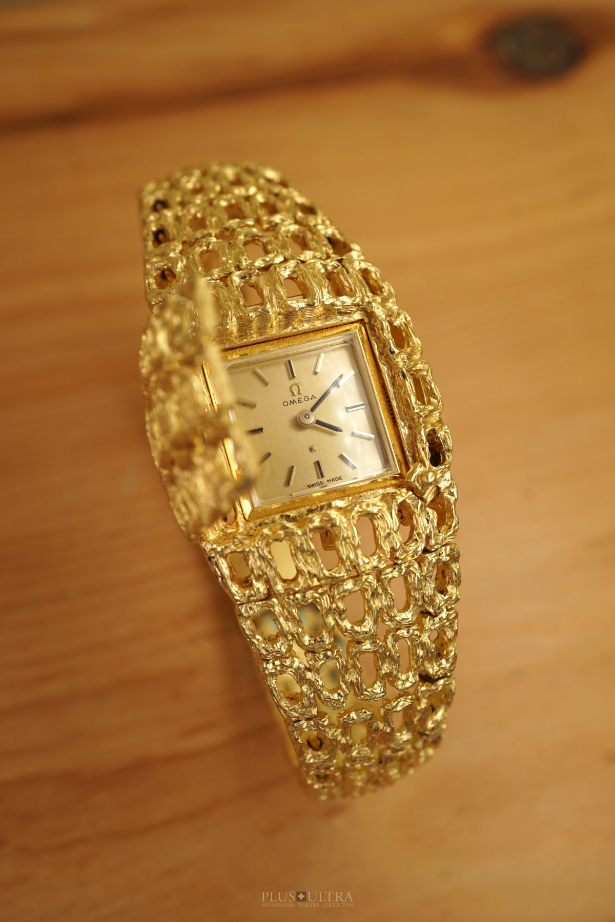 Omega Gilbert Albert Secret Time-Cage: Rare Maille d'Or-Bracelet