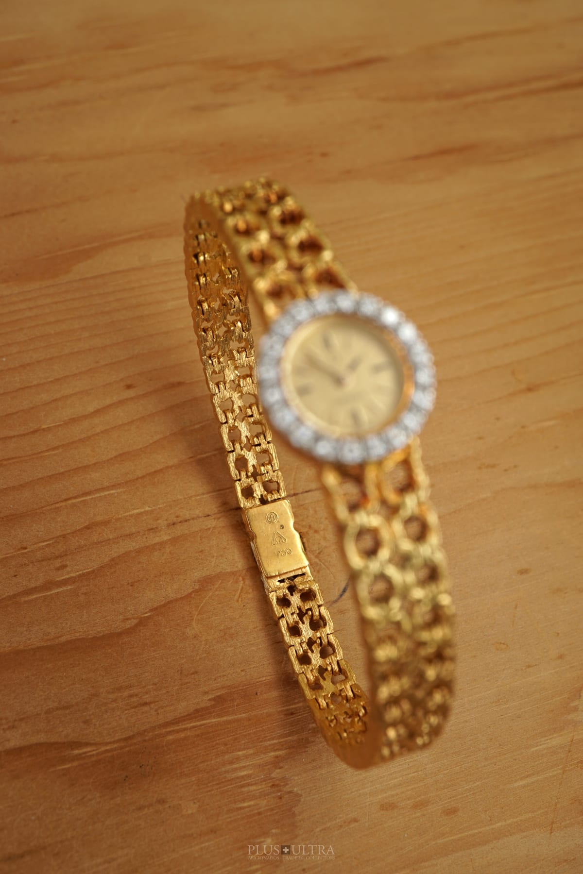 WHY WE LOVE IT? Foremost, because of its stunning design & elegant wearability. But the high quality (18K-yellowgold) and technical delicacy (piccolo DuoPlan) is another reason. A super-rare sparkling & wearable stunner in see-through lingerie-style by the Maestro Gilbert Albert.