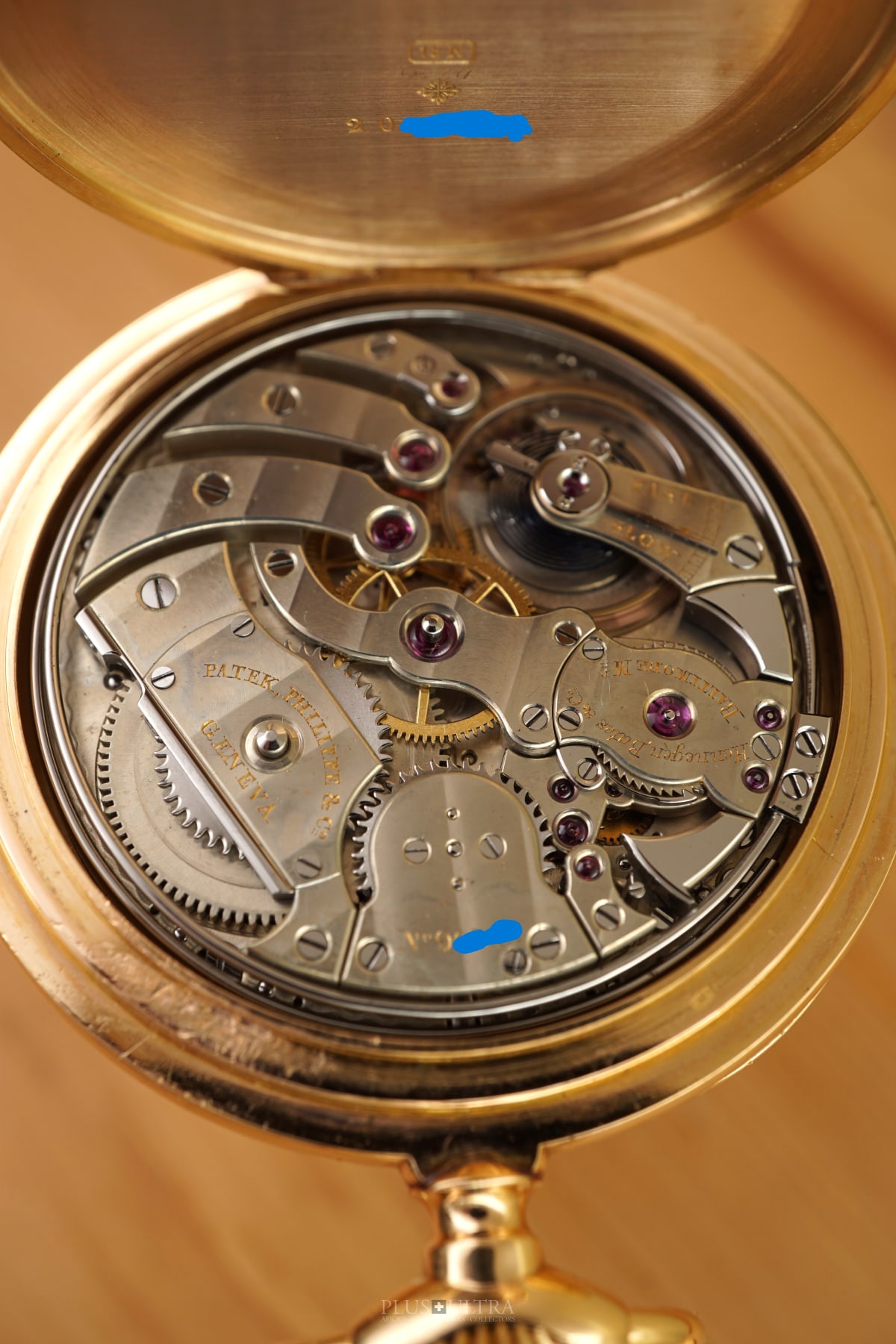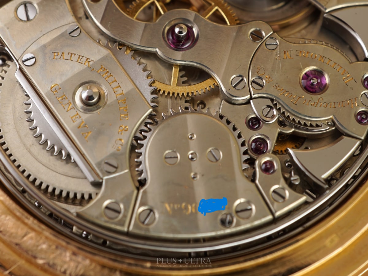 The case has a serial-number of 20X'XXX and the case is stamped on all lids with this number. The movement-serial is 90'XXX. The watch was sold proudly by Hennegen Bates & Co., Baltimore Maryland, which is engraved on the inside lid and even on the movement, next to the maker Patek Philippe & Co.