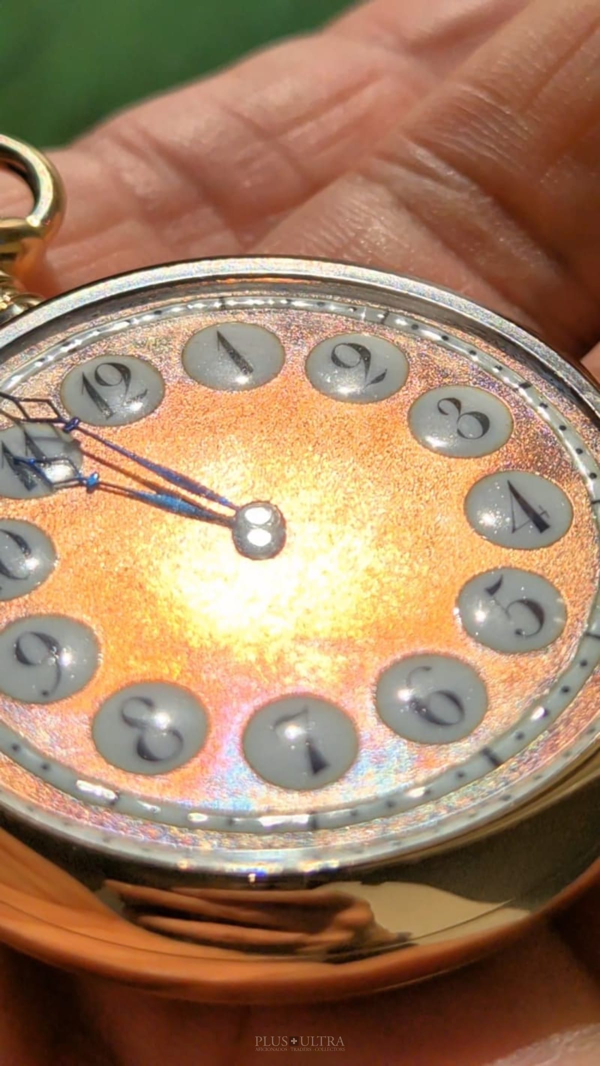 Indeed, the design is not only timeless but appears even modern with its decent size, no small second at six o'clock and the enamel around the lavish salmon- / rose-gold dial. Grandpas pocketwatch? Maybe, but it appears not so old-fashioned as the standard pieces, which look boring with their lame white enamel-dials and the small second-subdials.