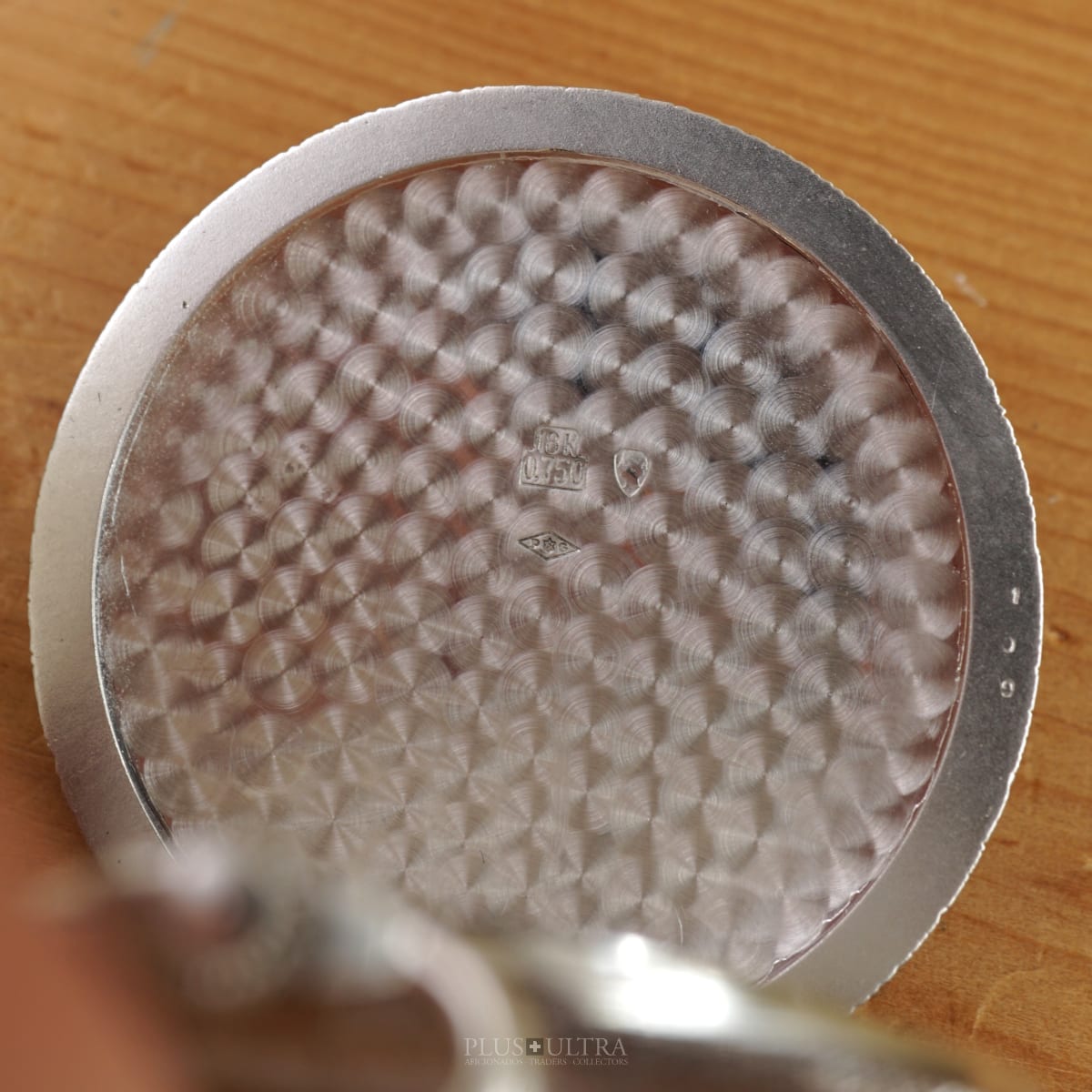 WHY WE LOVE IT? Because it is a lavish beauty made by the most celebrated goldsmiths from Geneva, the Piaget-owned Ponti Gennari (P☆G, see hallmark). Also, it is a rare gem in yellowgold already but almost a unicorn in 18K-whitegold: a beautiful hand-chiselled case in like-new condition. The special Cartier-esque black & white dial makes it a timeless classic.