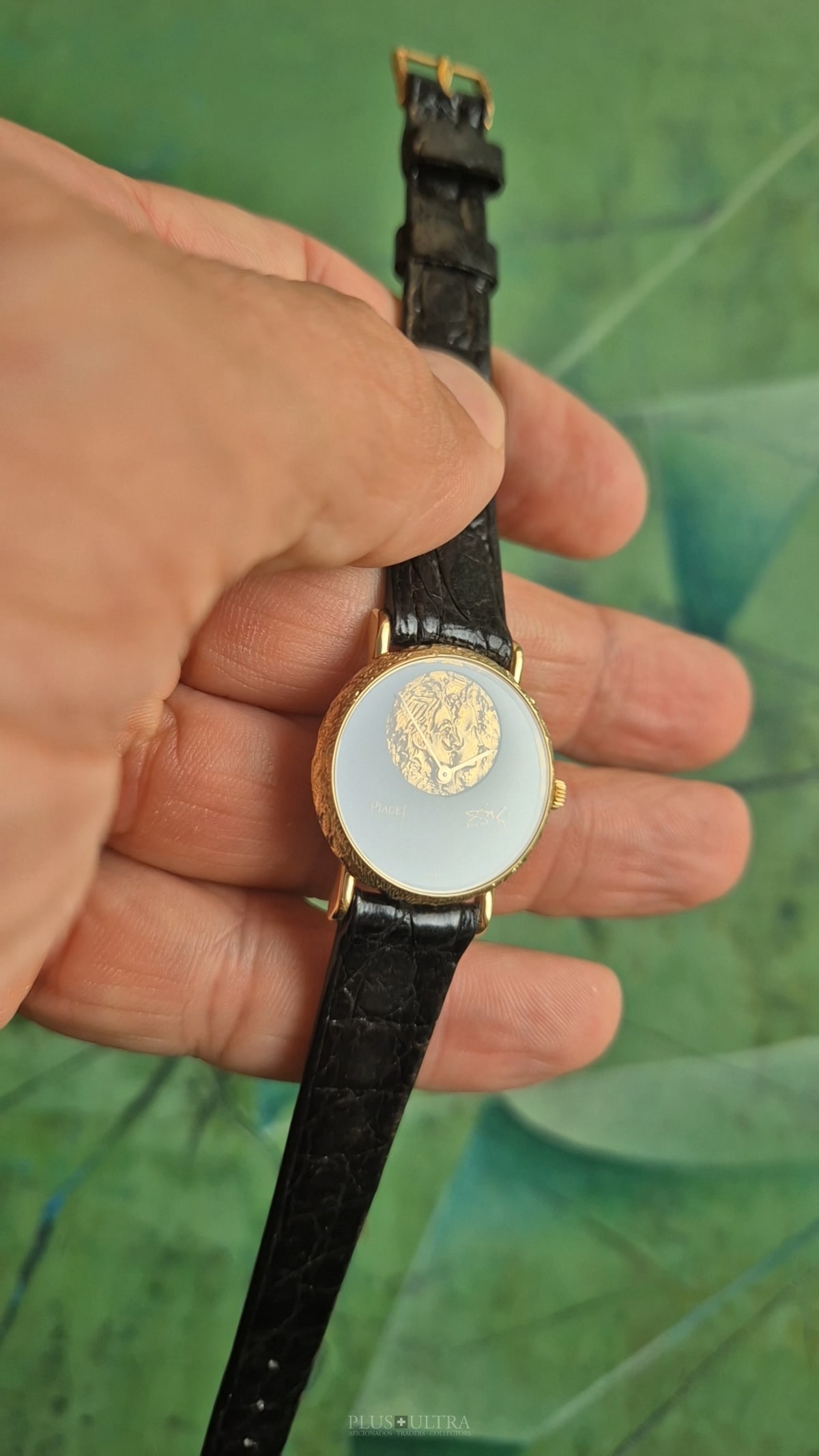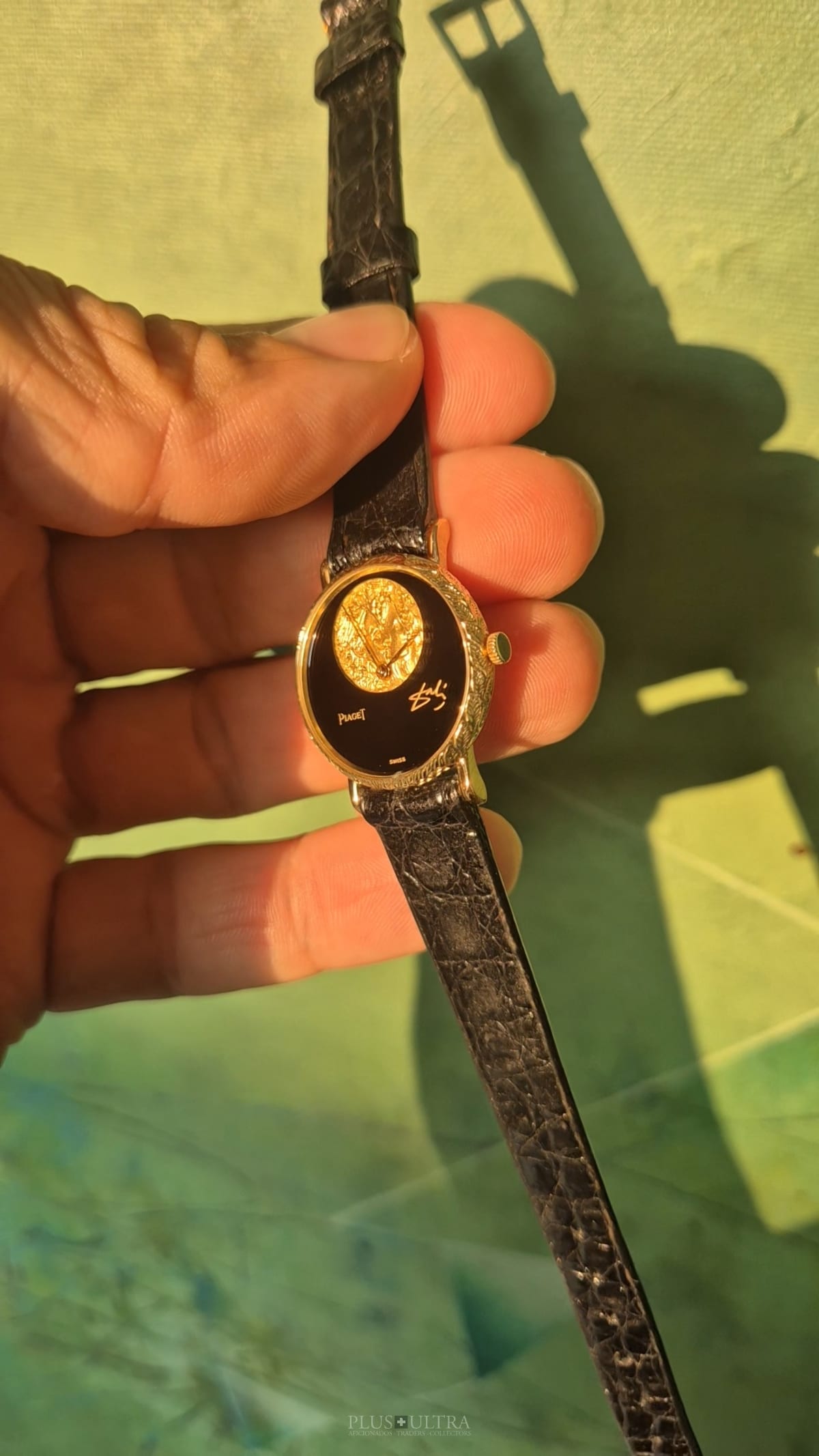 WHY WE LOVE IT? The rare and special 22K-Dali-coins used in Piaget-watches & -jewellery -- in this case surrounded by a highly contrasting Onyx-stonedial.