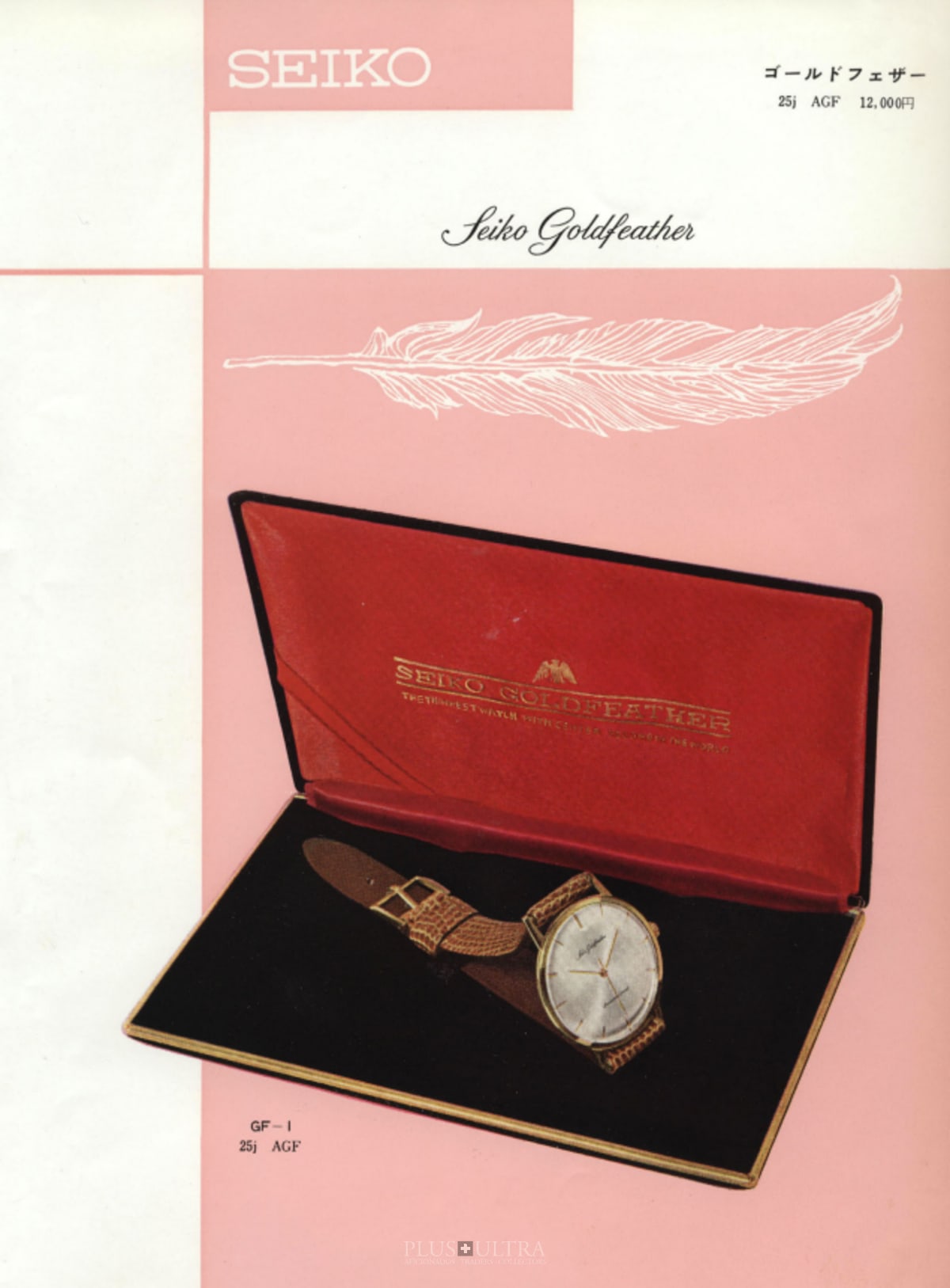 The Goldfeather was also the most expensive top-model in the 1960-Seiko offerings. Obviously it is not only an important and collectible watch but also a rare one and especially in 18K -- the Goldfeather was made in steel and 14K-goldplated (priced JPY12'000 in 1960) and (like this one) in solid 18K. In descending quantities, of course.