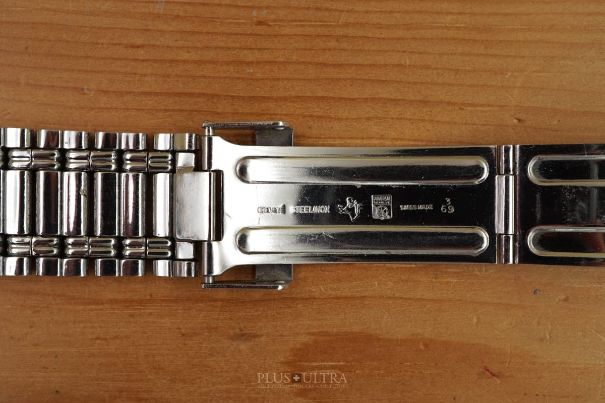 The watch was made in 1969 according to our notes & books and is in beautiful preserved condition. The screwed crown makes it water-resistant and the flexible Gay Freres-Bracelet (dated 1969-Q3, fits up to 20cm) gives this diver a unmistakable character.